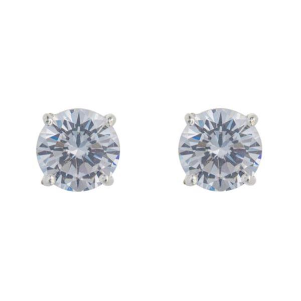 A pair of sterling silver circular claw set cubic zirconia studs with anti-tarnish coating.